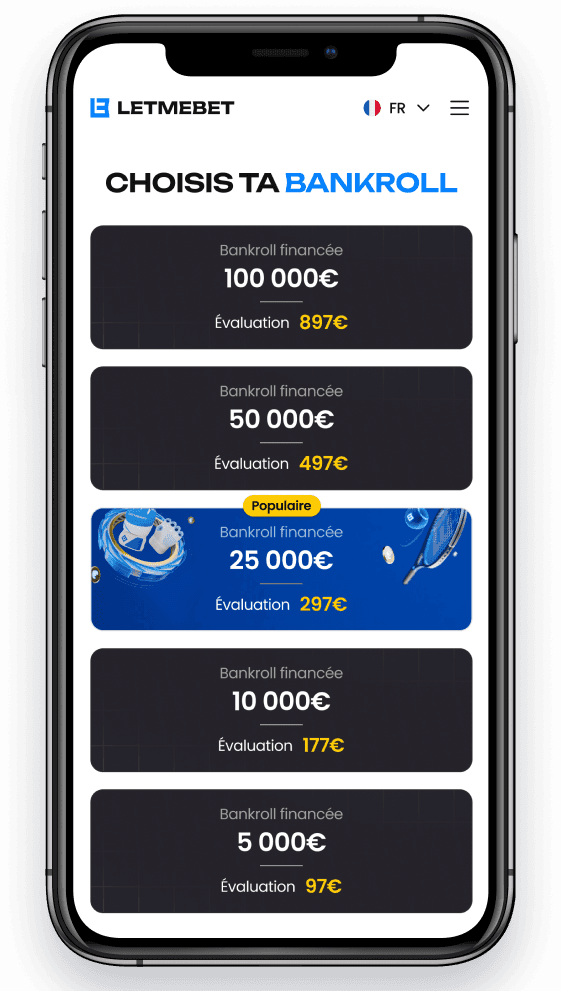 Choisis l'évaluation avec la bankroll de ton choix allant de 5 000€ à 100 000€.