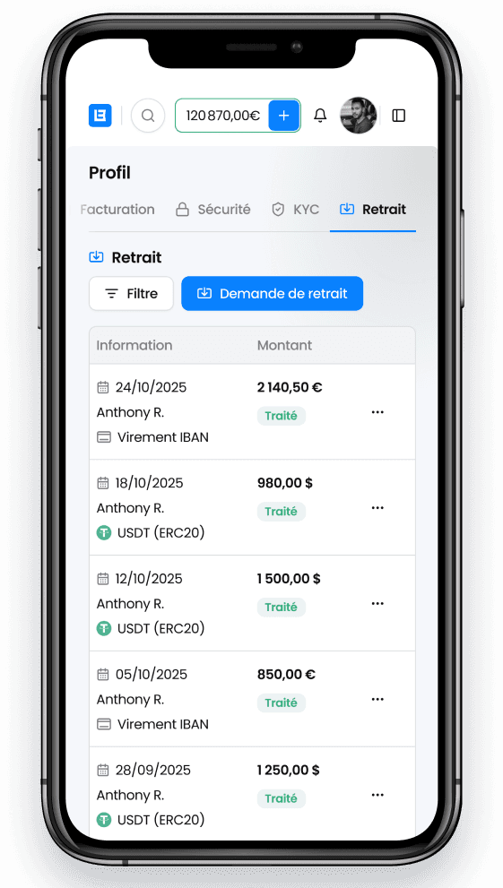 Retire tes gains sur ton compte bancaire en quelques clics seulement.