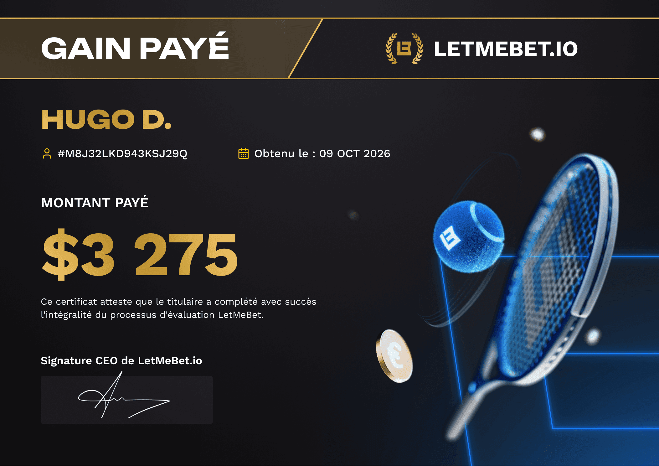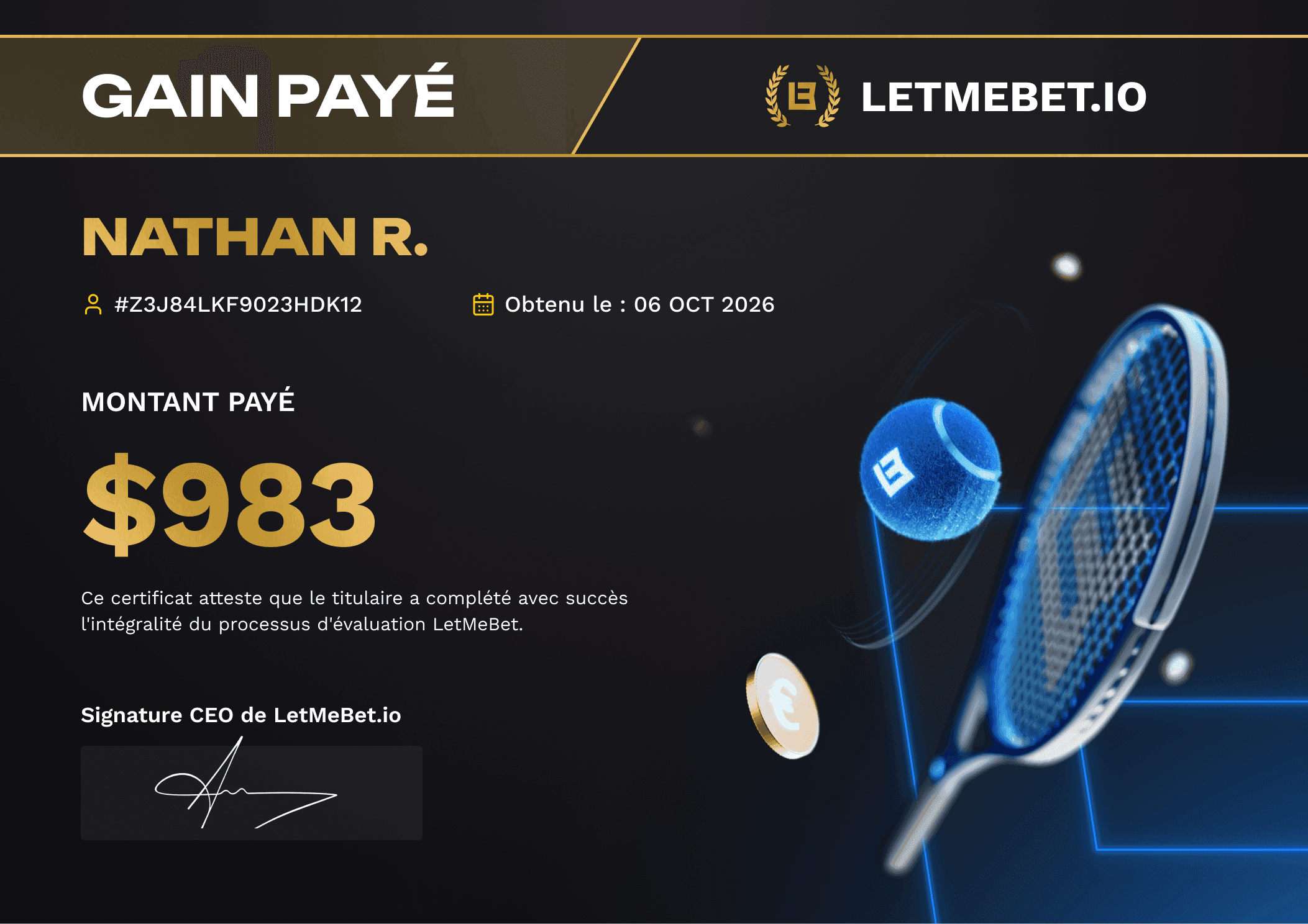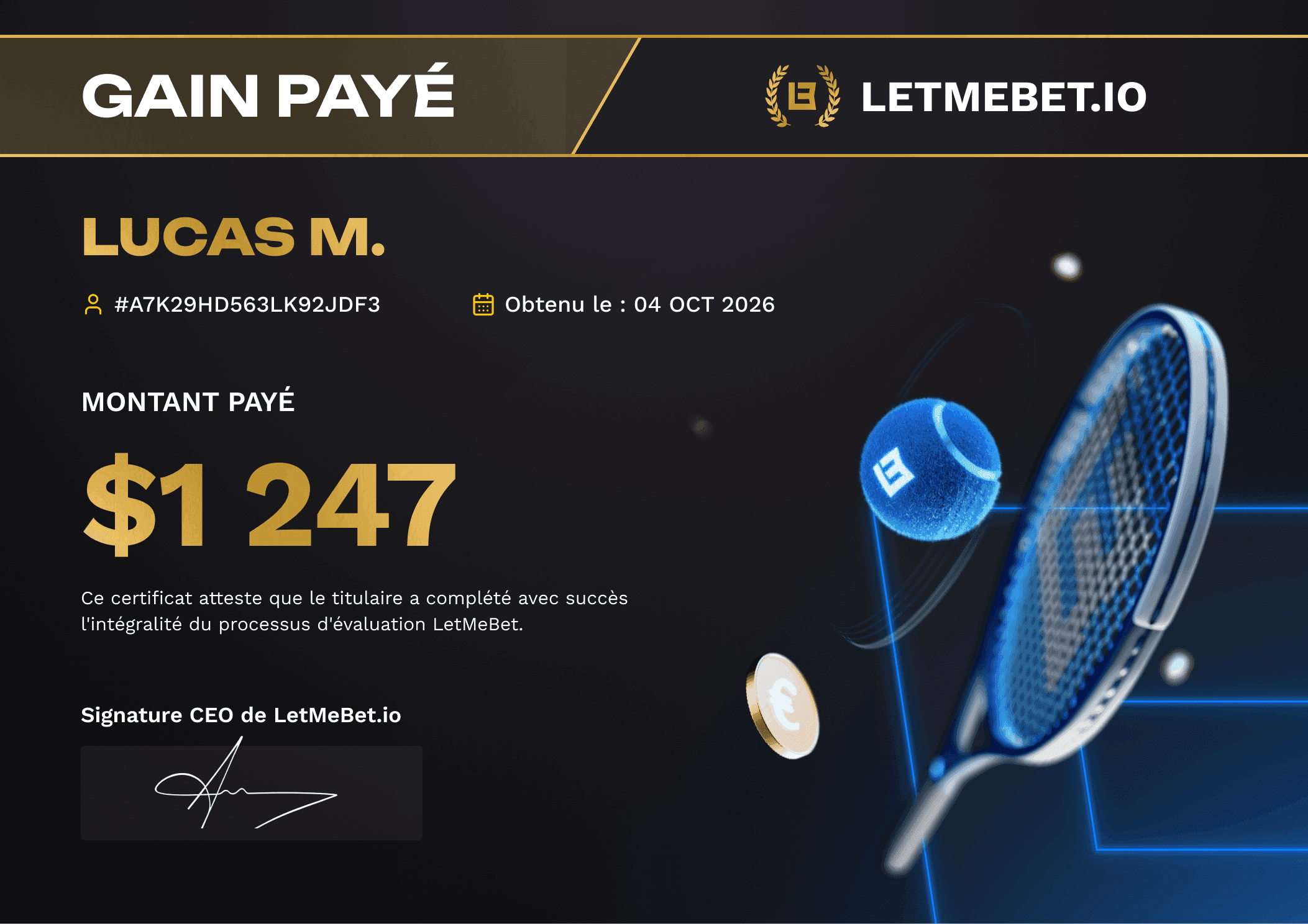 Grâce à Letmebet, je parie avec une bankroll de 25 000$ et mes pronos me rapportent parfois plus de 3000 par mois et ça a changé ma vie.