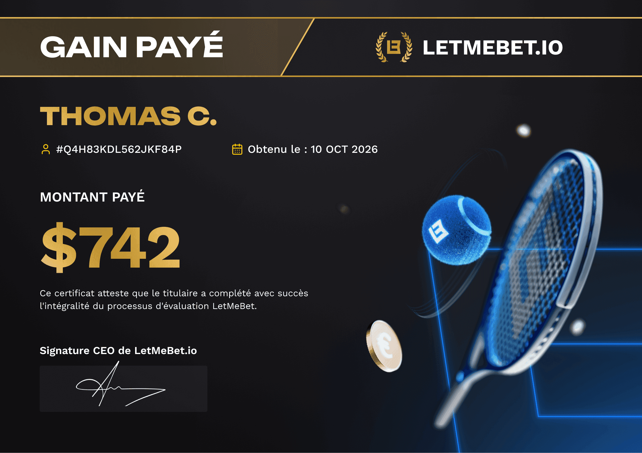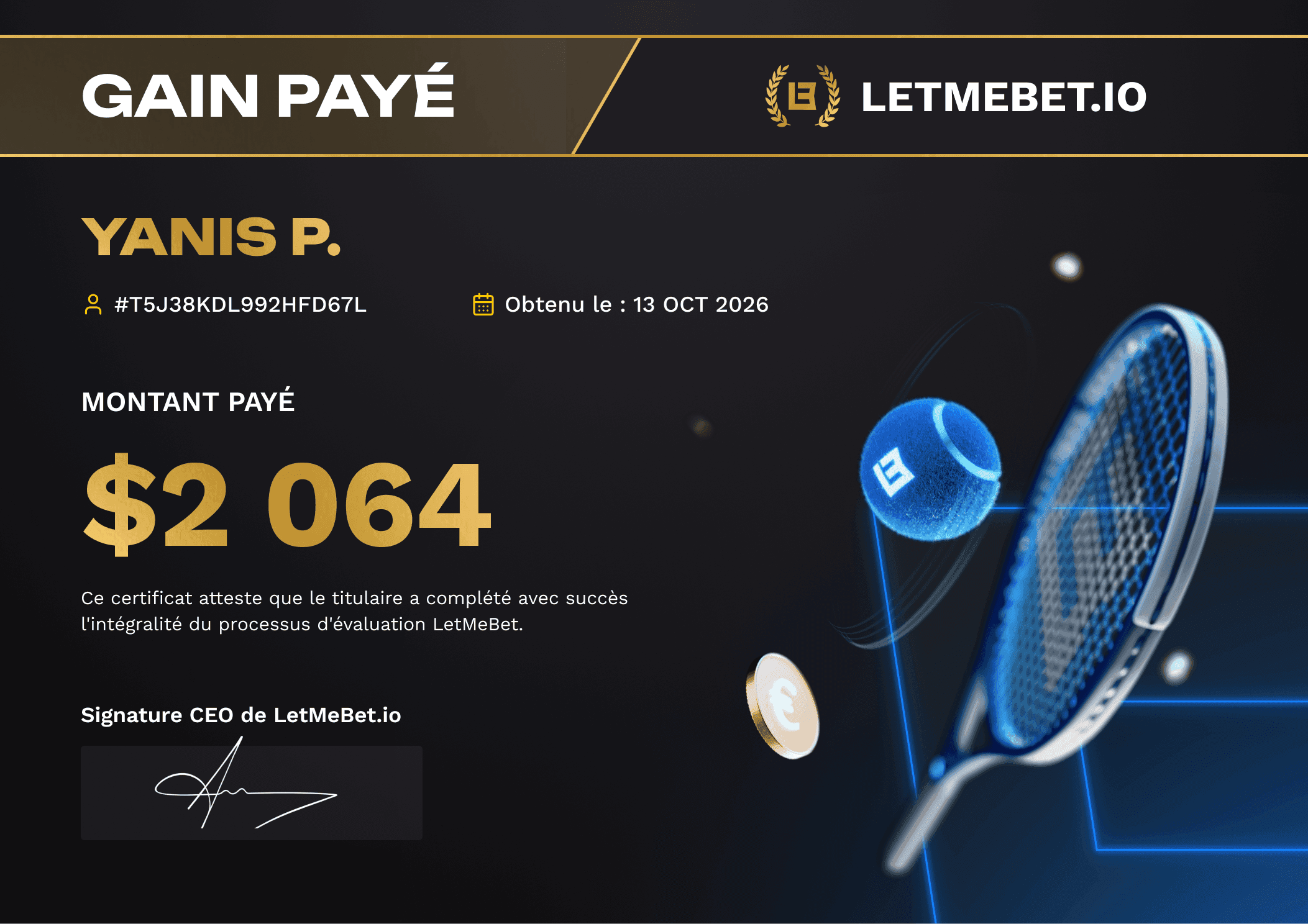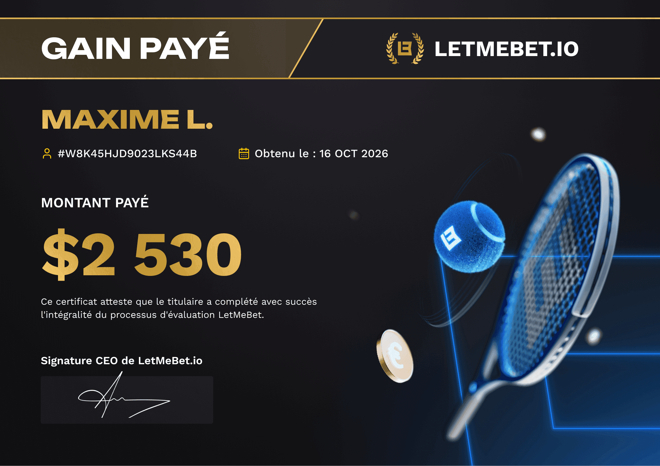 Grâce à Letmebet, je parie avec une bankroll de 25 000$ et mes pronos me rapportent parfois plus de 3000 par mois et ça a changé ma vie.