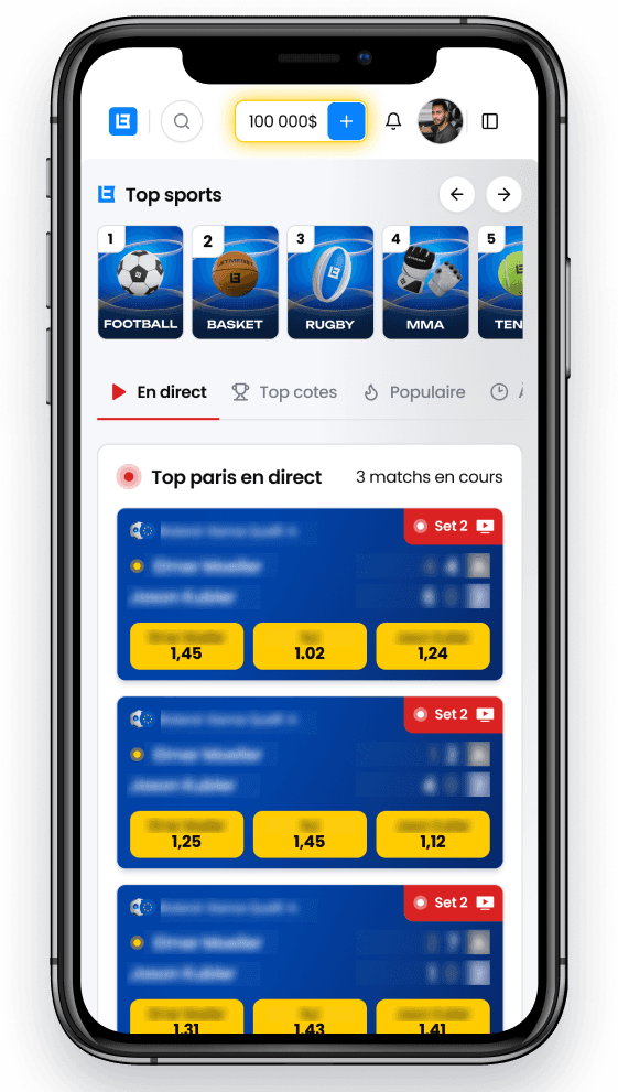 Retrouve tes sports préférés, identifie les bons matchs et gagne de l'argent.
